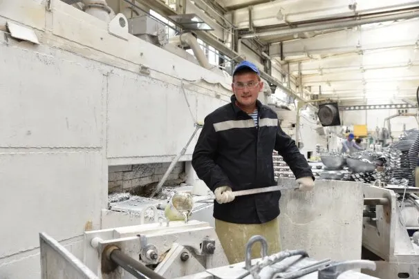 Литье под высоким давлением (ЛВД) – современный метод литья алюминиевых сплавов, отличающийся полной автоматизацией производства, высокой производительностью, идеальной точностью размеров и детализацией сложных форм. Такие характеристики посуды обеспечивает специальная литейная машина, которой оснащено производство Kukmara. В ней расплав алюминия под большим давлением и с высокой скоростью направляется в форму, что обеспечивает высокую плотность отливки и гладкость поверхности (шероховатость Ra = 3,2-10 мкм согласно ГОСТ 2789-73).